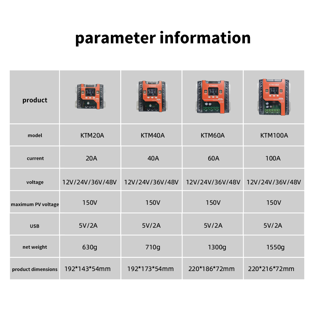 KTM 20A-100A MPPT太阳能控制器 Solar Charge Controller